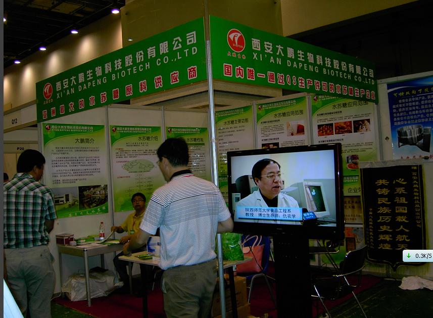 參加中韓貿(mào)洽會 走向國際大市場 參加青島食品配料展 尋求發(fā)展新商機 水蘇糖,我要認(rèn)識你! 大鵬生物參加2012中國國際輕工消費品展覽會 恭賀大鵬生物榮獲中國輕工展覽科技創(chuàng)新獎 大鵬生物參加第五屆中國國際飲料工業(yè)科技展 第四屆中國營養(yǎng)產(chǎn)業(yè)高層論壇開幕 大鵬公司董事長與公眾營養(yǎng)健康中心主任于小冬在水蘇糖聯(lián)誼會上 高鵬董事長在第四屆中國營養(yǎng)產(chǎn)業(yè)高層論壇上 公眾營養(yǎng)改善OLIGO項目啟動儀式